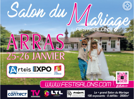 Le Salon du Mariage d’Arras les 25 et 26 janvier 2025 à Artois Expo.C’est aujourd’hui le plus grand salon du mariage au Nord de Paris et des Hauts de France avec 110 exposants pour une surface de 3500m².32 éme édition du salon au sein de la région Hauts de France. Le salon du mariage d’Arras est un salon incontournable avec plus de 110 exposants venus de toute la région pour le plus grand plaisir des futurs mariés de la région !Vous ne pouvez pas pour ce jour unique ne rencontrer qu’un photographe ou qu’un organisateur de mariage pour faire votre choix, ce salon vous permet de comparer les prestataires.